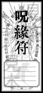 邪喬仙が発行する呪縁符は、購入者の方が最後に呪う対象の名と目的を書き込むと完成する呪符です。